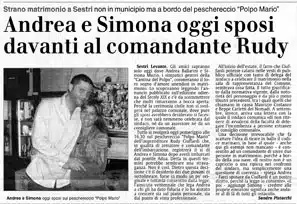 Lo scopriranno leggendo l’annuncio pubblicato sull’edizione odierna de “Il Secolo XIX” e c’è da scommettere che molti rimarranno a bocca aperta. Perchè la cerimonia civile non si svolgerà nel palazzo comunale, dove pure gli sposi avrebbero desiderato che si facesse, e non sarà neppure celebrata dal sindaco, nè da un assessore, nè da un consigliere comunale.